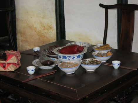 Here is a picture from the local museum of what a traditional dinner table consisted of, with the WanShan style pork knuckle set in the center.