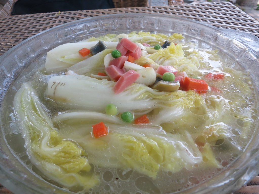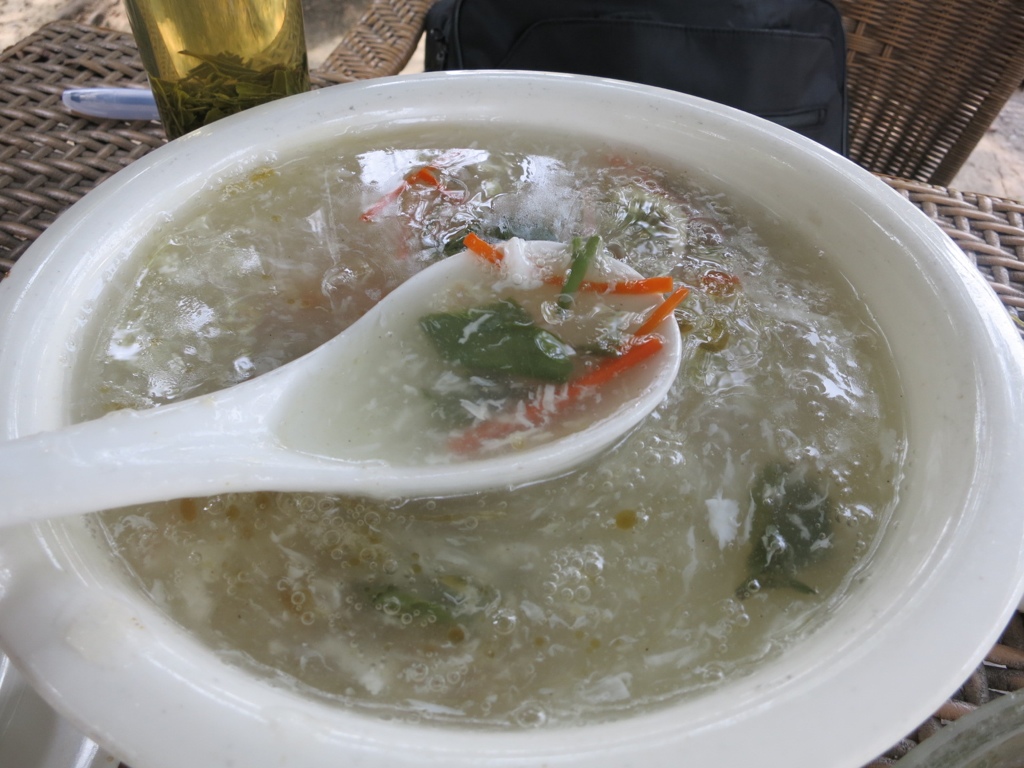 Light soup with green locally grown pond leaves, the leaves had a nice texture to them