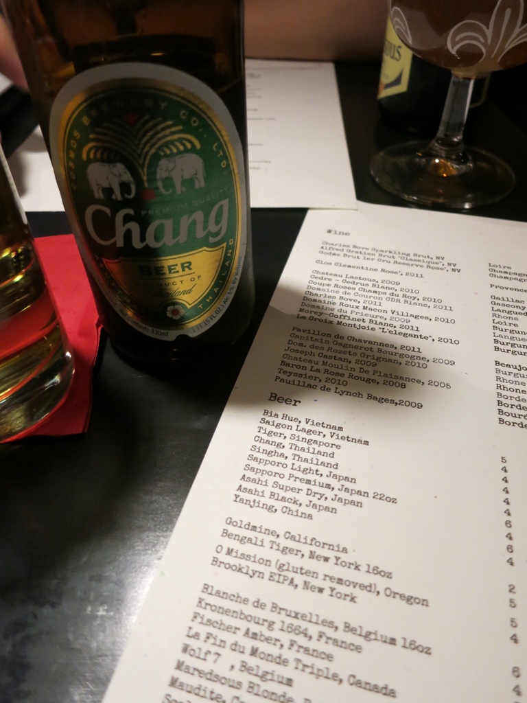 Loved their selection of Asian beers. They ran out of two that I wanted to try but the waiter recommended a Thai beer called Chang and I thought it was pretty decent.