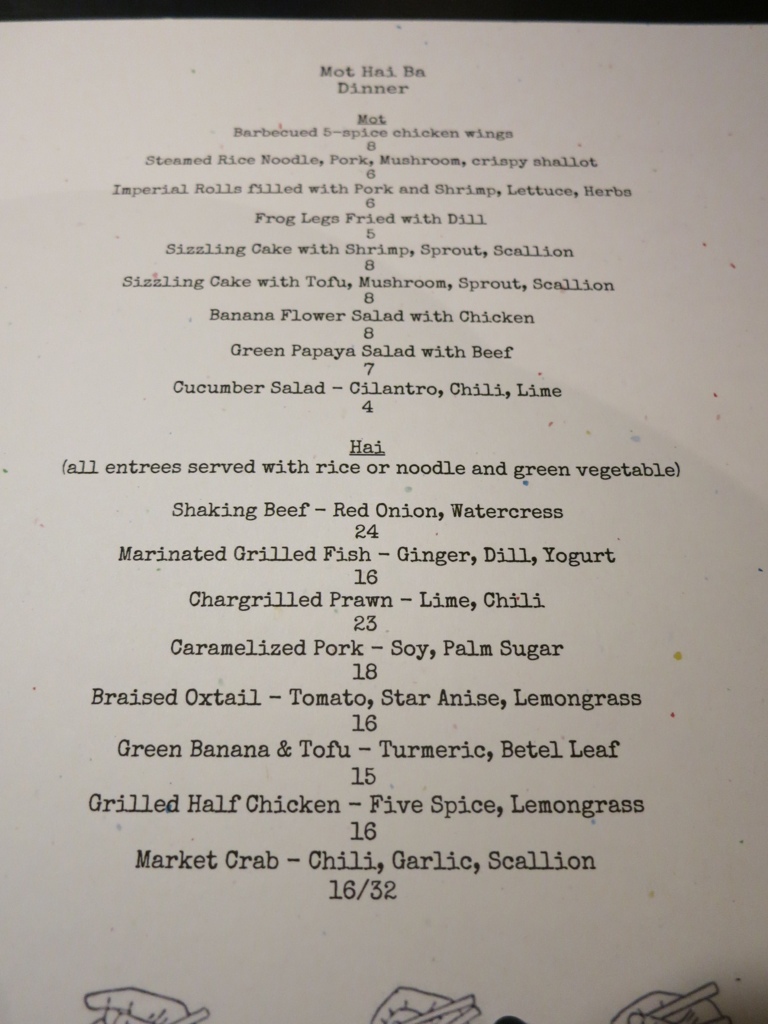 I ordered fried dill frog legs. Batter was light and slightly crisp. Needed salt…sauce was slightly sweeter than the usual prepared fish sauce nuoc cham and I would have really enjoyed it if it was slightly more seasoned.