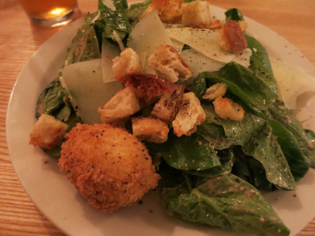Caesar salad made better with a chicken fried egg!
