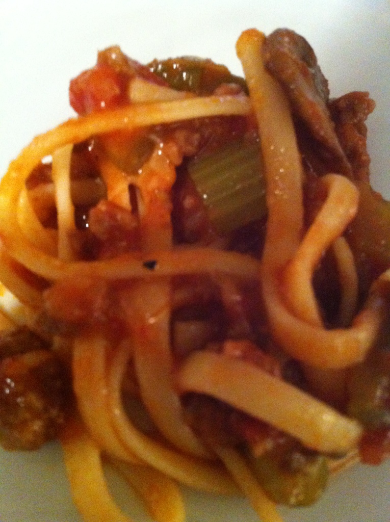 They market it as having 5 grams of digestible carbs and their manufacturing process “creates a matrix within the pasta, protecting 31 grams of carbohydrates from being digested”. Reviews from diabetics who tested their blood sugar levels after consumption seemed to support the claim. So I made a batch of my usual meat sauce and crossed my fingers that it wouldn’t taste like cardboard. (I’ve had other high fiber pastas in the past that tasted just wrong.)