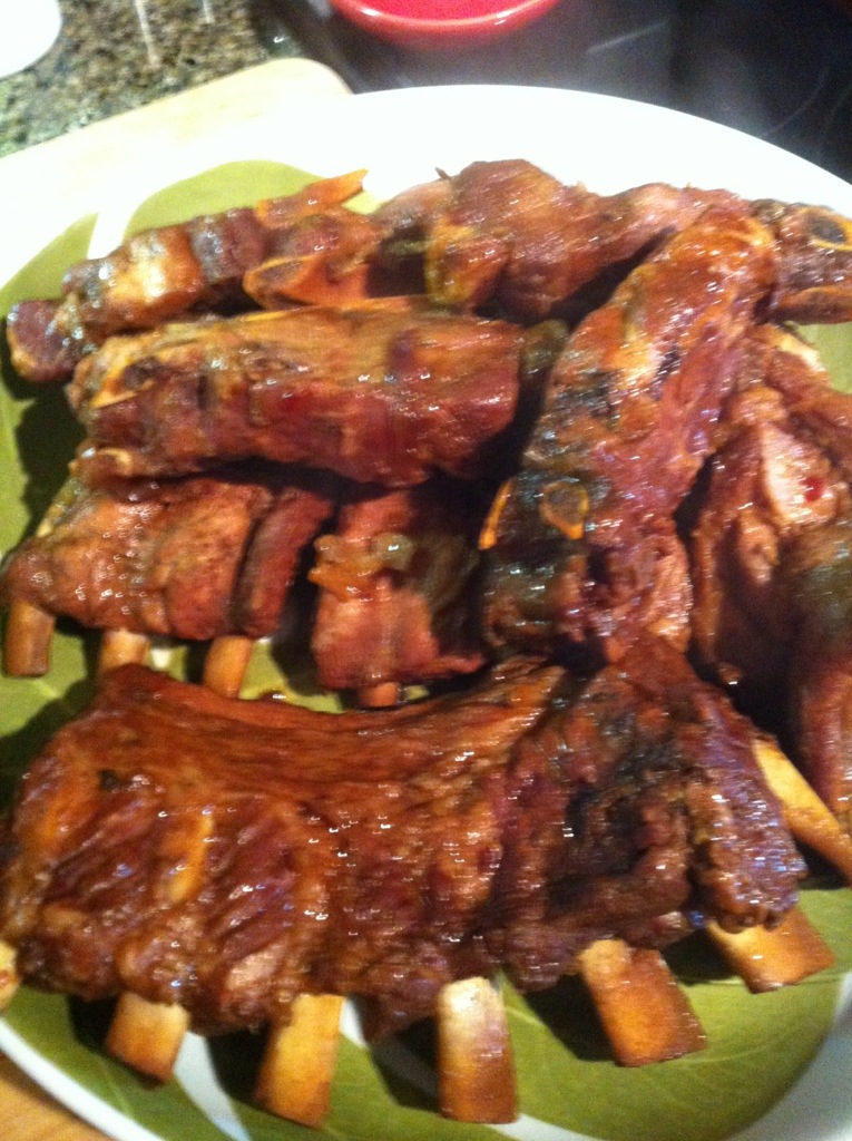 Our first home cooked meal as newly weds was more Hawaiian food haha. We were missing being on vacation and I wanted more of the ribs that we had at The Coconut Club for our rehearsal dinner. I used an adaptation of my Houston’s Hawaiian Ribeye 3 day marinade and since I didn’t want to wait hours for the ribs to cook, I made use of our latest wedding gift from our friend Dennis – a Breville Fast-Slow Cooker! I think this is my most favorite kitchen appliance of all time!!! I pressure cooked the ribs in about 40 minutes and it took another 20 minutes on the saute/sear function (in the same pot) to thicken up the sauce and voila – fall off the bone yummy ribs in one hour of cooking time. I love this Breville appliance!!!