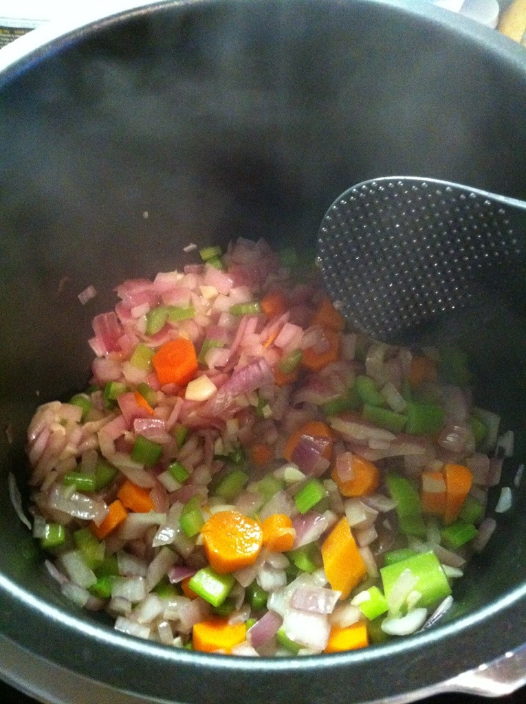 First I browned onions, garlic, celery, and carrots until they were soft using Breville’s saute/sear function.